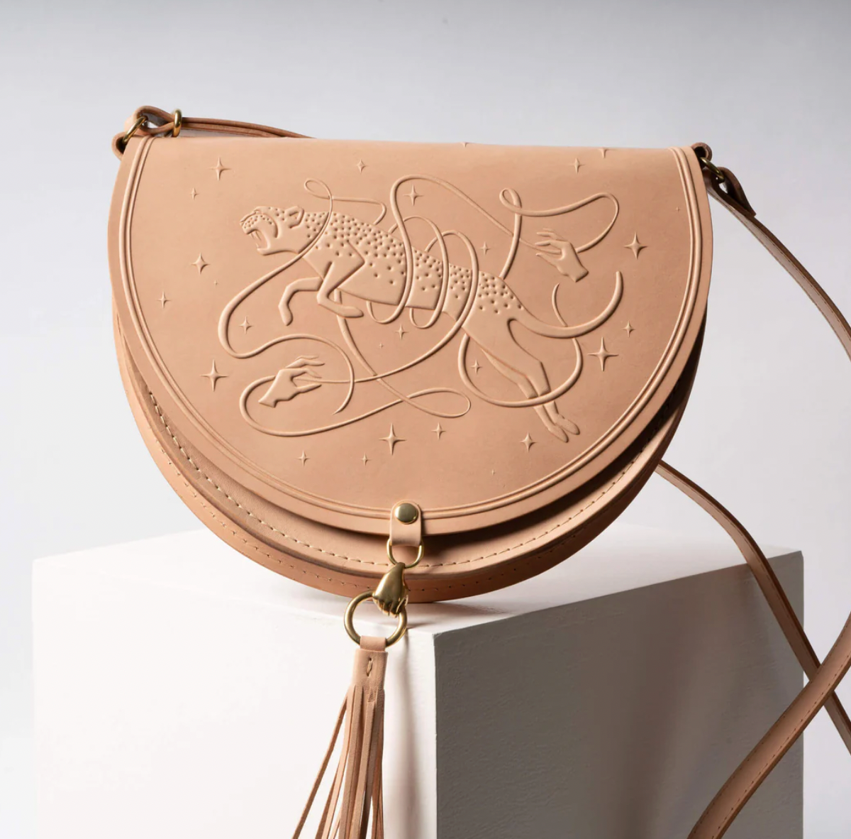 A functional piece of wearable art. Handcrafted from leather, this crossbody features a slim silhouette, adjustable strap, and signature cast bronze hand clasp—an unexpected detail that sets it apart.