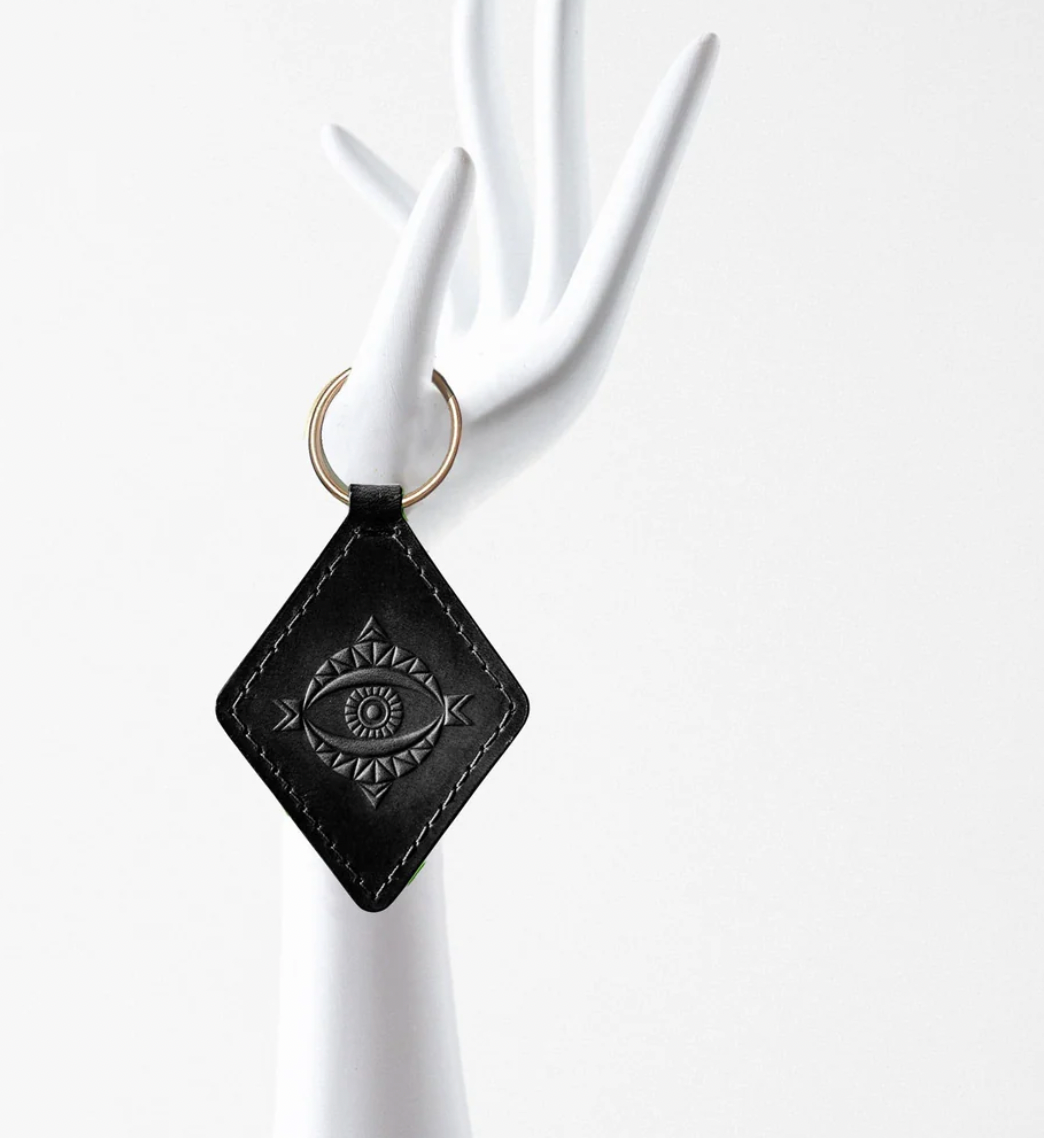 A small detail that makes a strong impression. Hand-cut in a diamond shape , each key fob is one-of-a-kind. Finished with a sturdy brass ring.