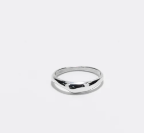 The Faris Lull Ring is a delicate, curved band designed to nestle seamlessly with the Faris Rest Ring, offering a harmonious and sculptural look. It's available in Sterling Silver.