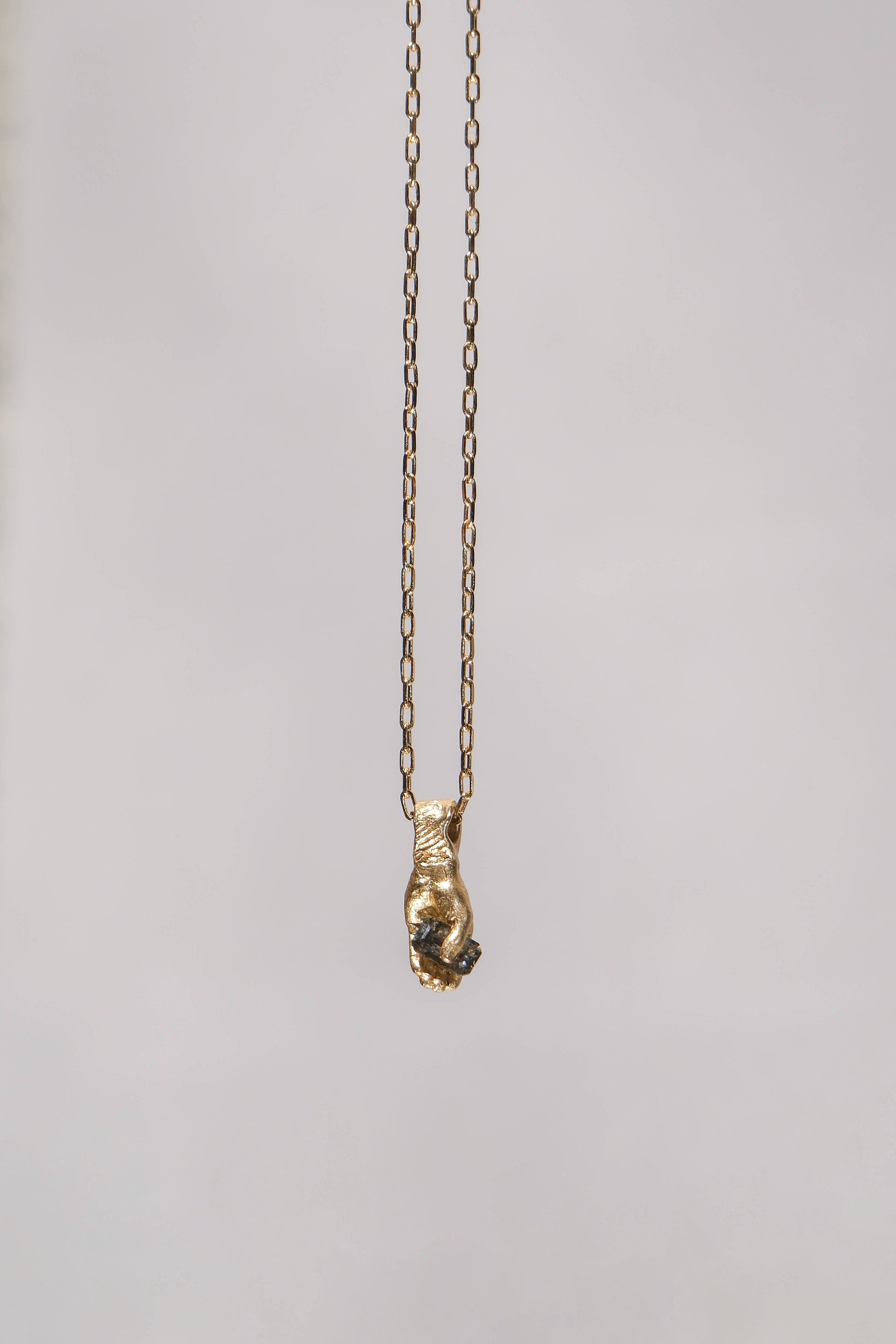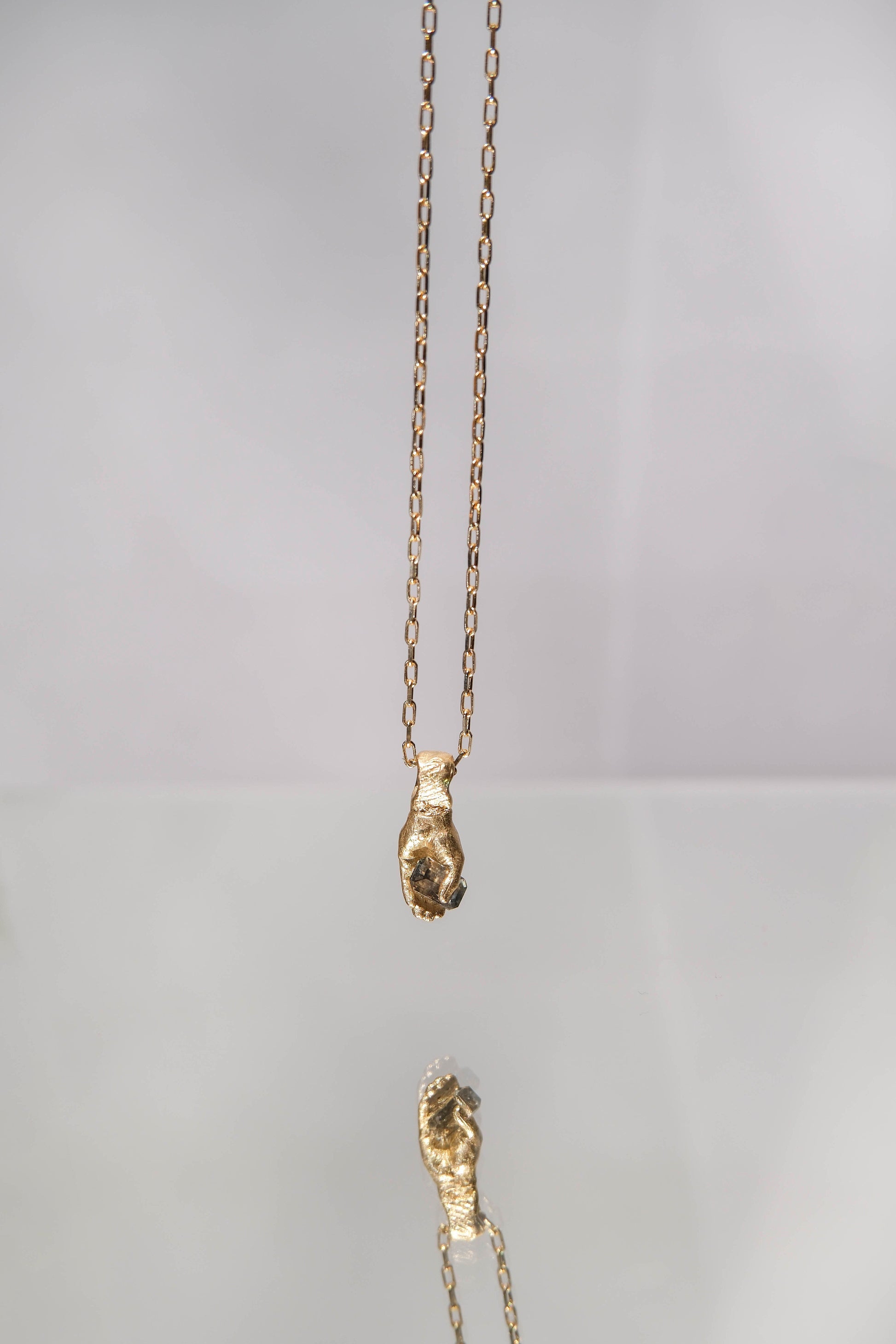 Fraser Hamilton Gold Hand Pendant with Sea-foam Emerald Cut Sapphire