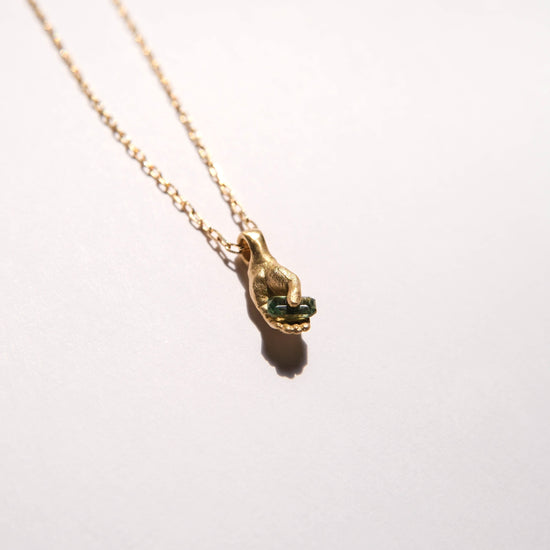 Fraser Hamilton Gold Hand Pendant with Green Emerald Cut Sapphire