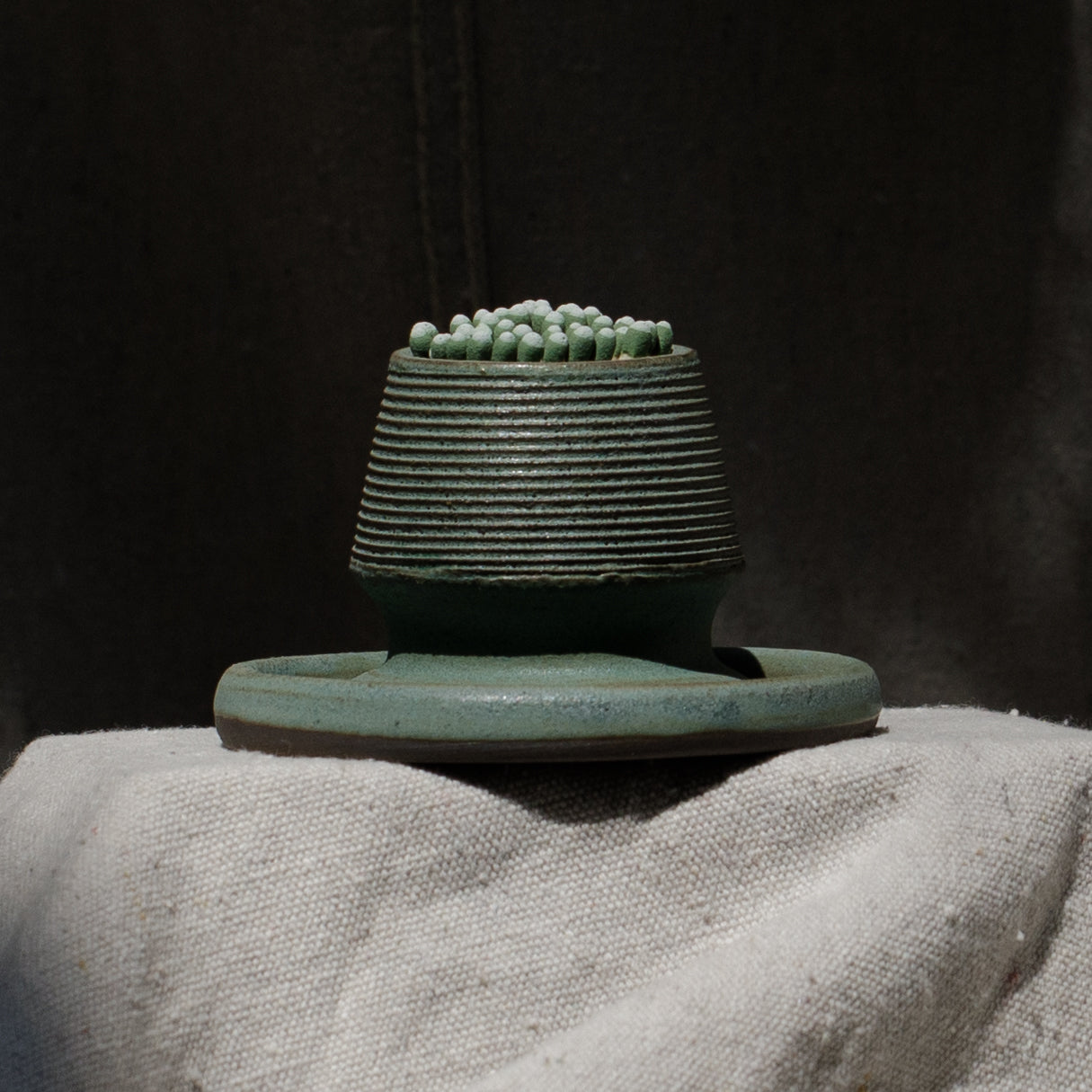 Form meets function in this hand-built ceramic tray with a textured match-strike surface. Each piece is unique in glaze and shape—use it to light a flame and catch ash, small items, or intention.