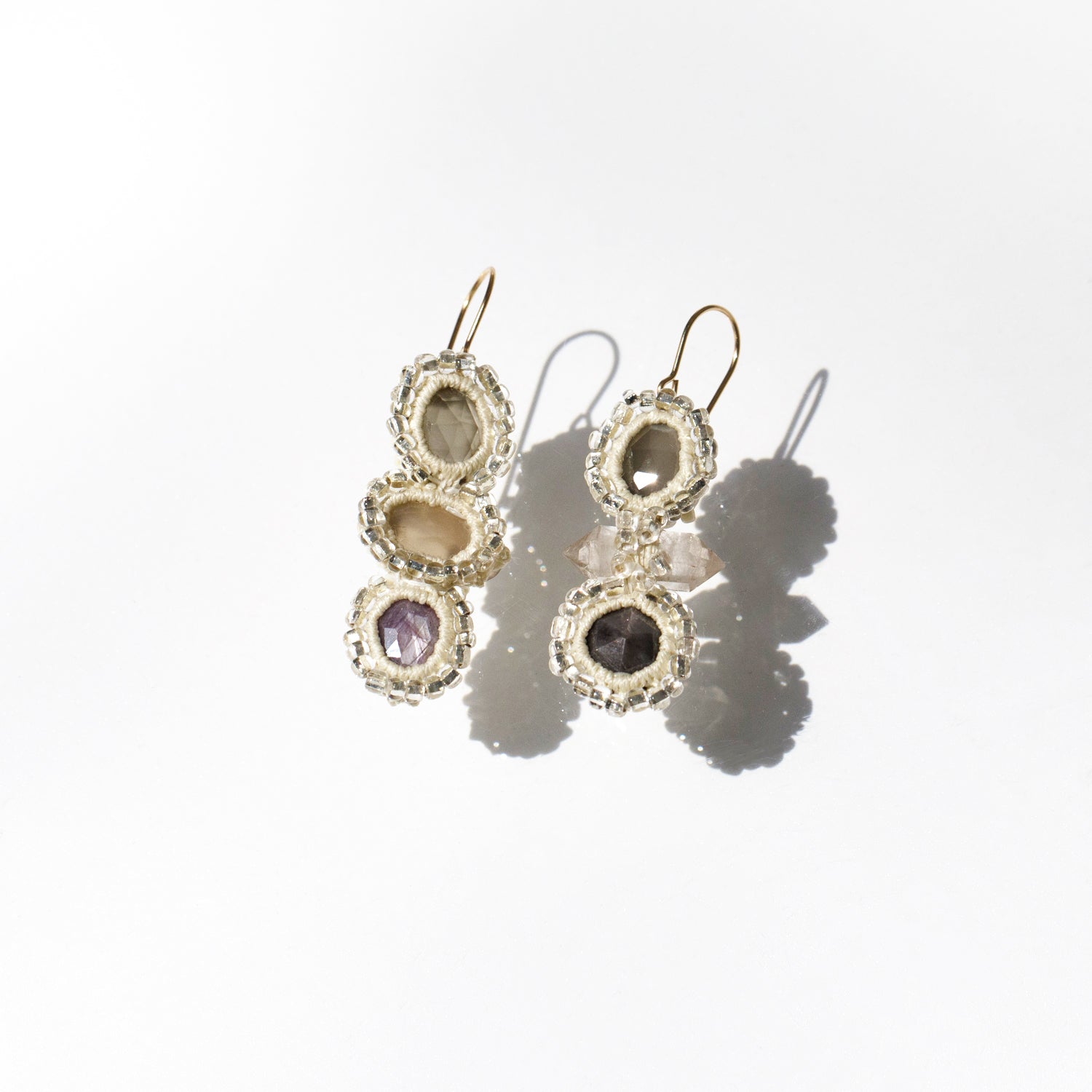 Jacki Holland Tibetan Quartz, Moonstone, Garnet & Sapphire Earrings