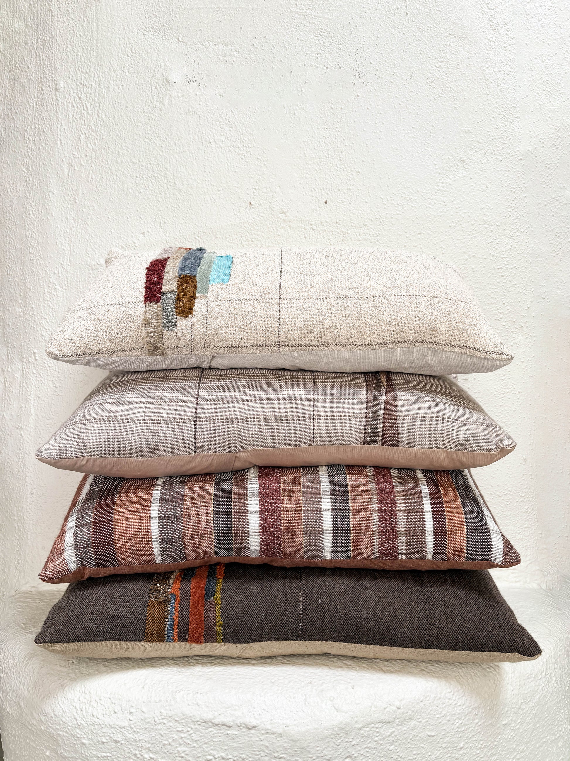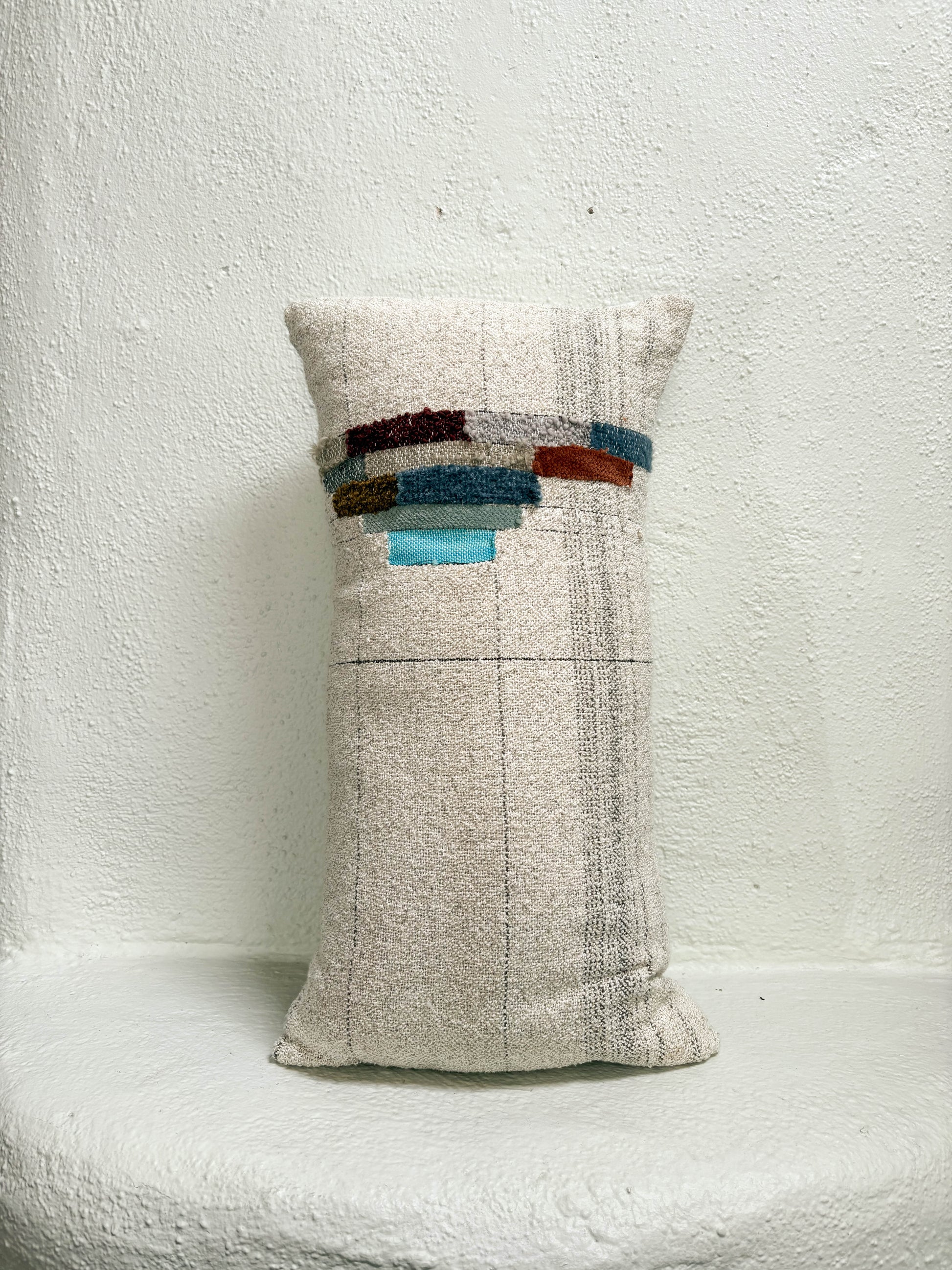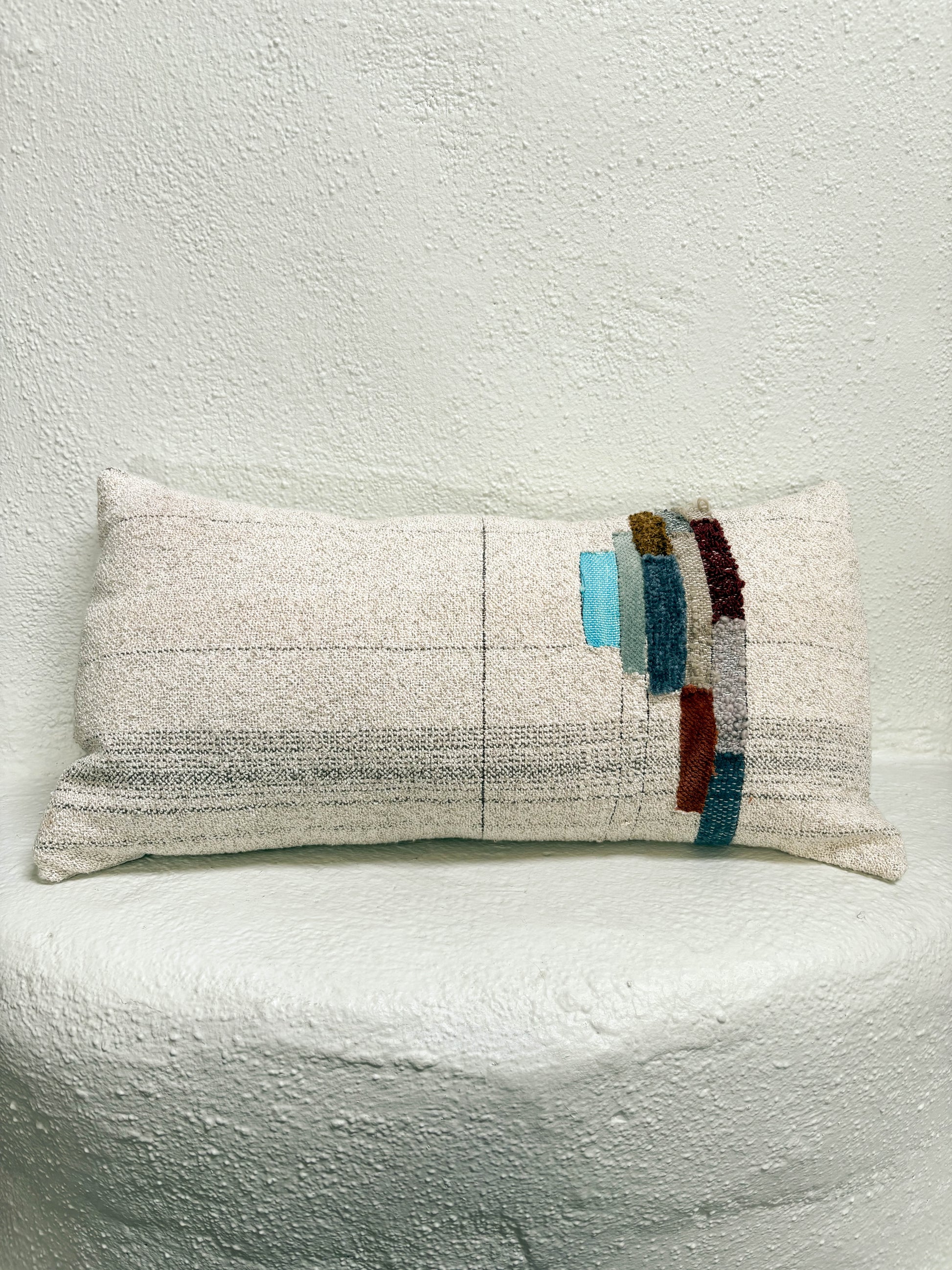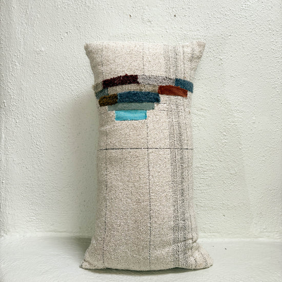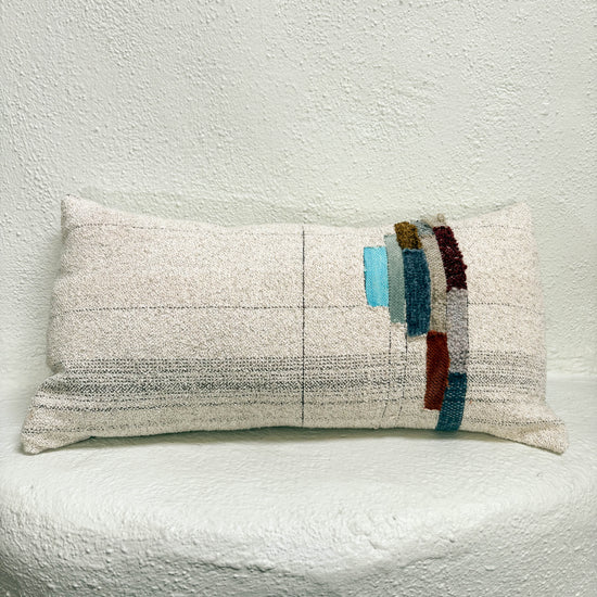 Jess Feury Handwoven Colorblock Pillow- White/Multicolor