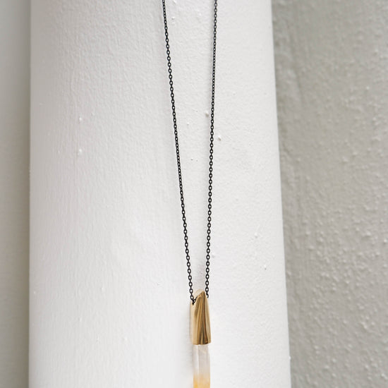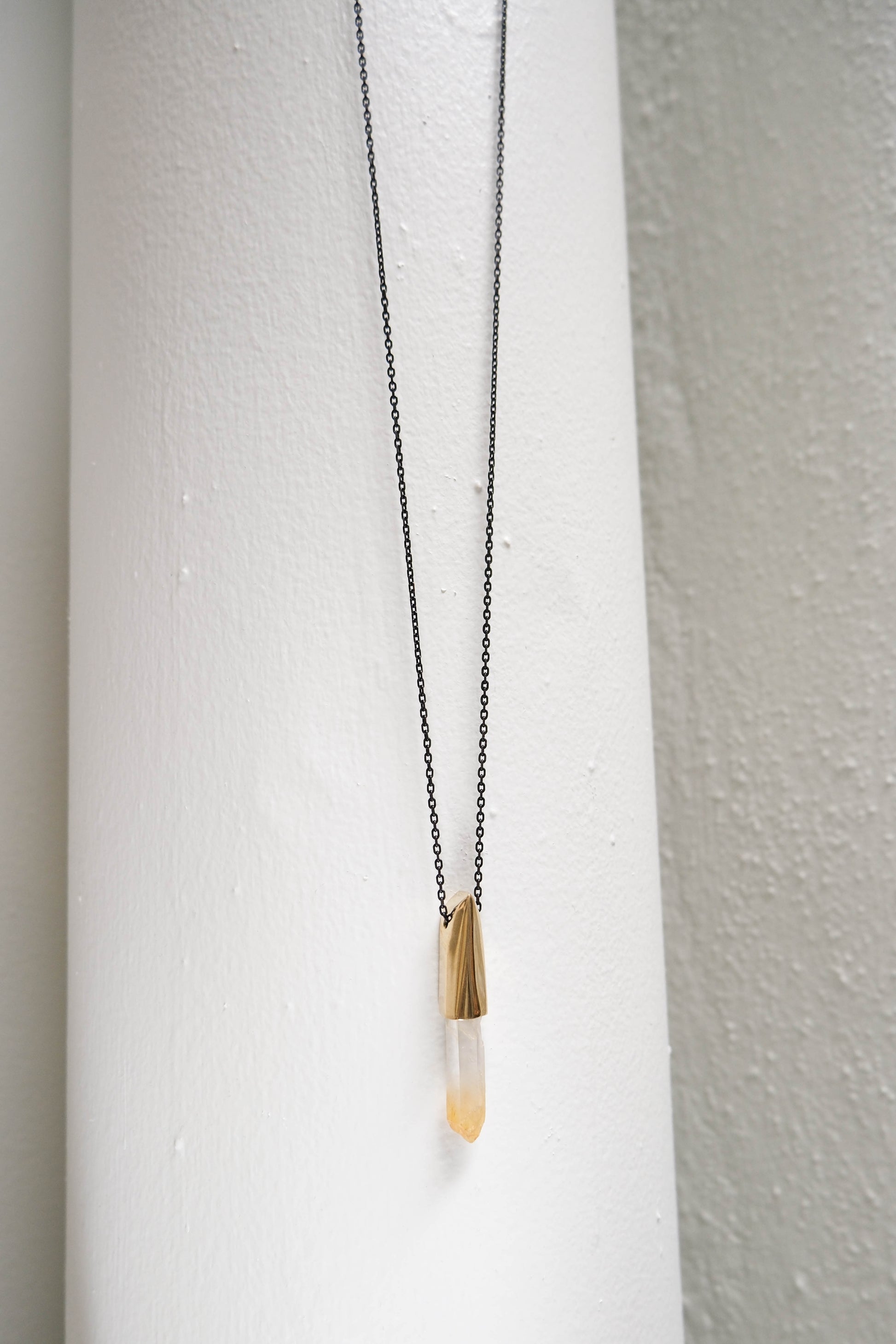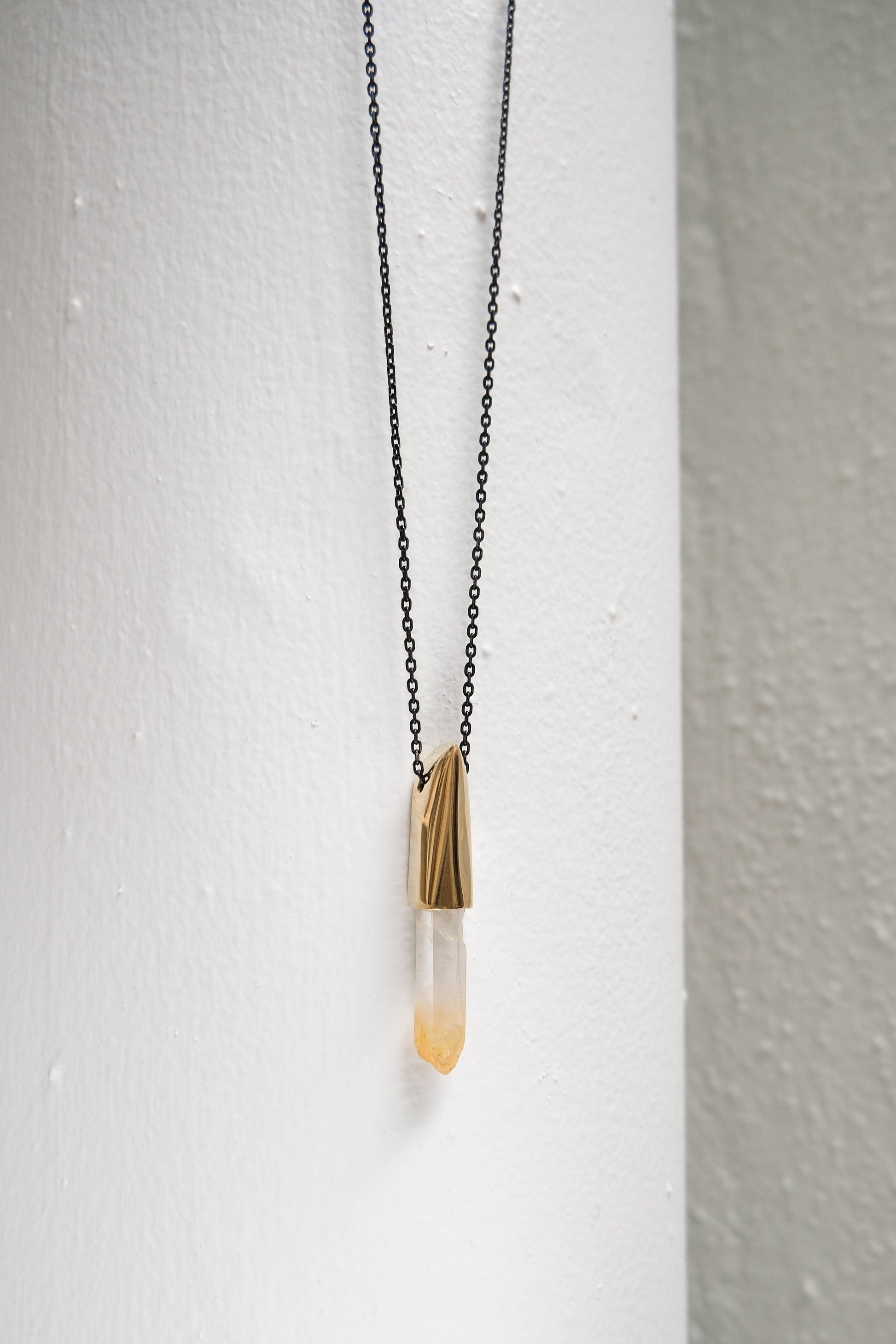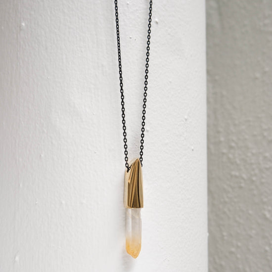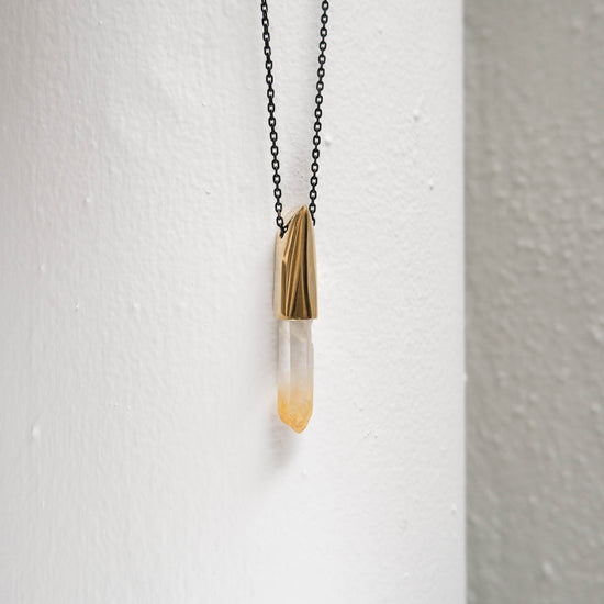 K/LLER Collection Large Brass Capped Faceted Raw Mango Quartz Point