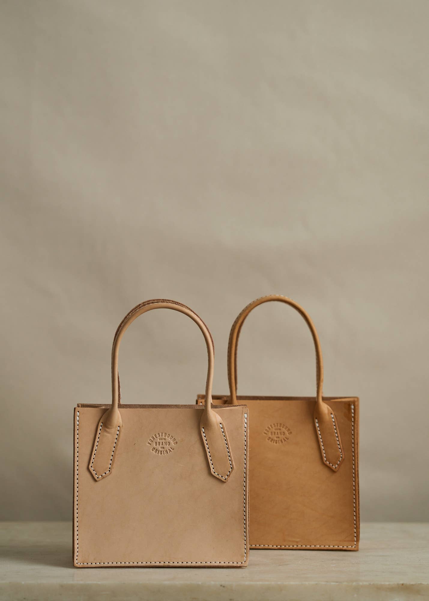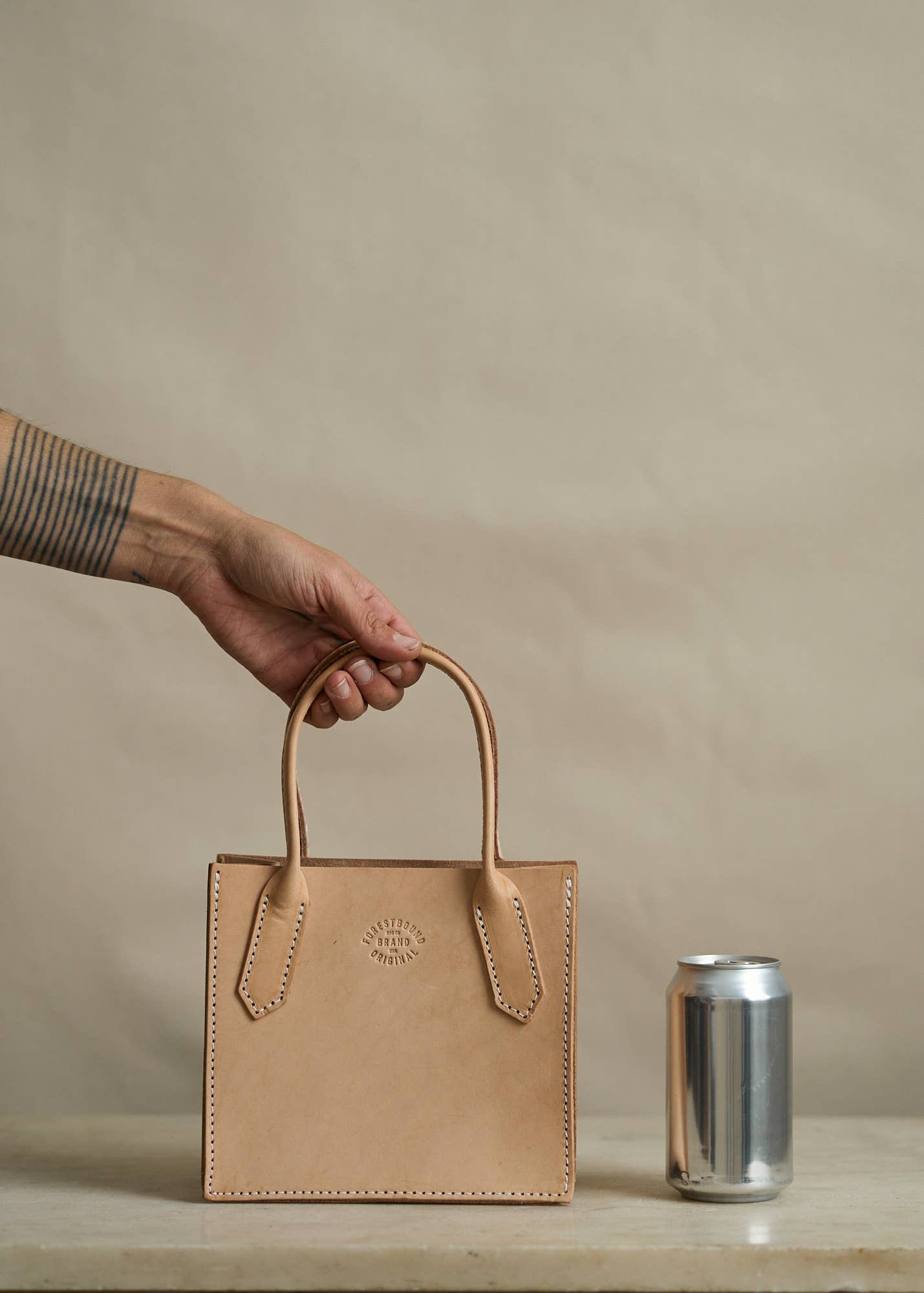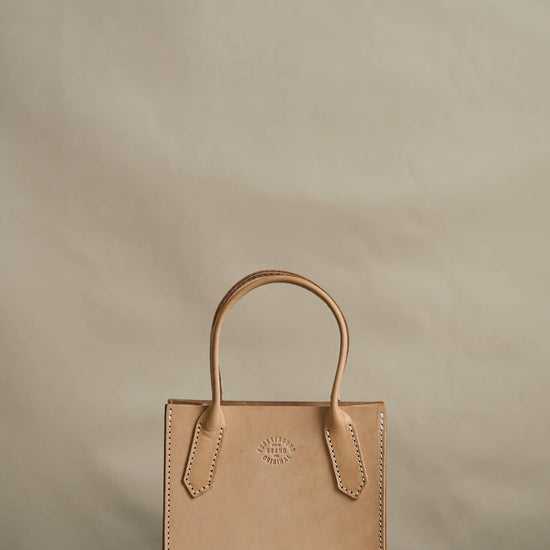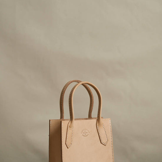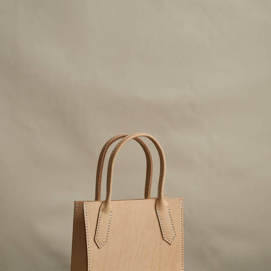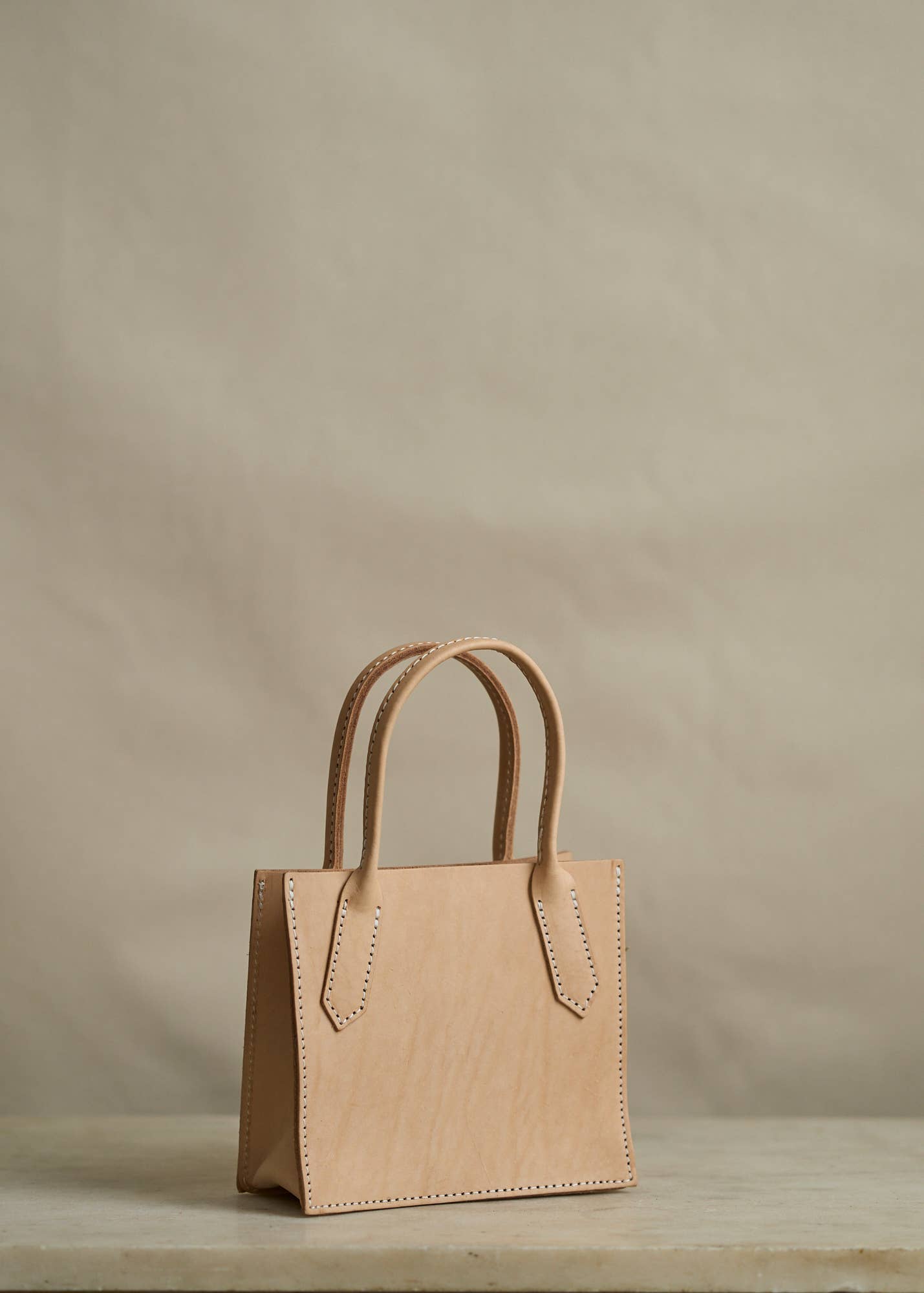 This classic every day bag was inspired by a one off handmade piece we uncovered at an estate sale and is meant to be a timeless accessory that pairs well with every occasion. The Bebe Dock Bag is our smallest of the bunch and is a perfect size for carrying only the essentials... your phone, wallet, chapstick, and a few other trinkets. Measures approximately 7.5" wide, 7" tall, 3" deep with a strap drop of 4.5". Natural vegetable tanned leather is untreated and will age beautifully as you start to use it. Veg tan leather patinas with time and exposure to the sun - it starts as a pale pink but will eventually turn into a gorgeous light honey brown color. The third photo shows how veg tan leather will patina after being in the sun for approximately one week.