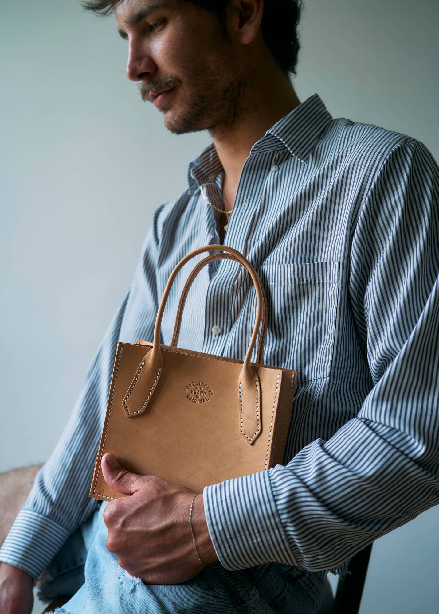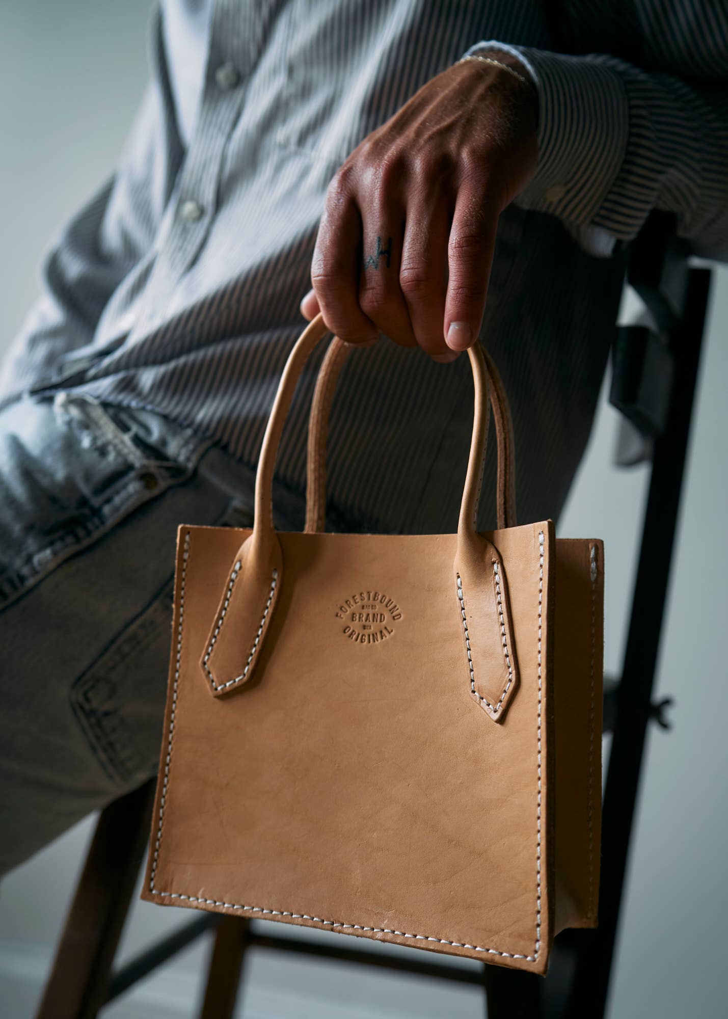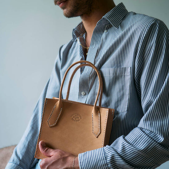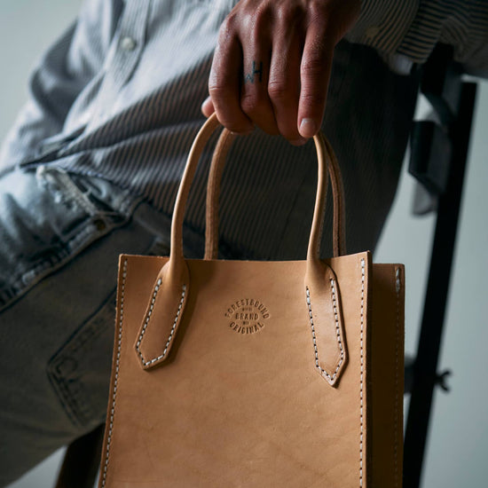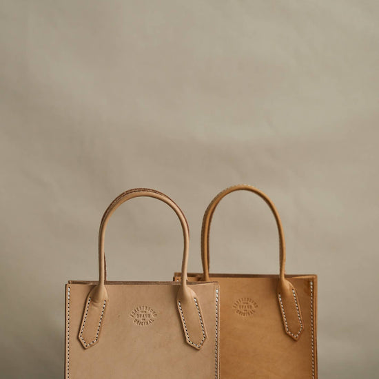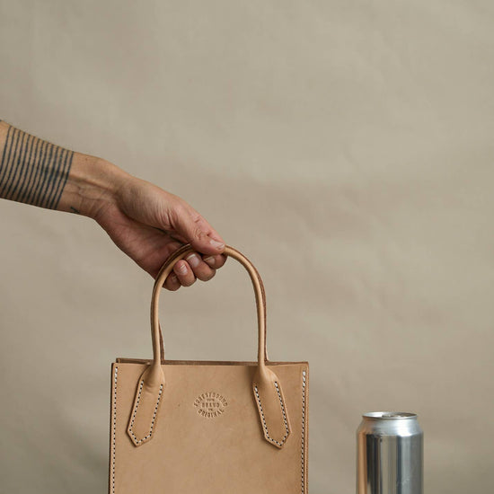 This classic every day bag was inspired by a one off handmade piece we uncovered at an estate sale and is meant to be a timeless accessory that pairs well with every occasion. The Bebe Dock Bag is our smallest of the bunch and is a perfect size for carrying only the essentials... your phone, wallet, chapstick, and a few other trinkets. Measures approximately 7.5" wide, 7" tall, 3" deep with a strap drop of 4.5". Natural vegetable tanned leather is untreated and will age beautifully as you start to use it. Veg tan leather patinas with time and exposure to the sun - it starts as a pale pink but will eventually turn into a gorgeous light honey brown color. The third photo shows how veg tan leather will patina after being in the sun for approximately one week.