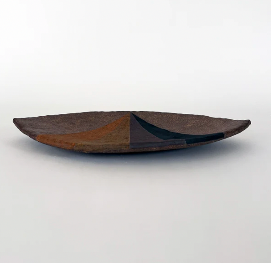 Hand formed hammered Tucker stoneware eye dish is painted with Prism Black