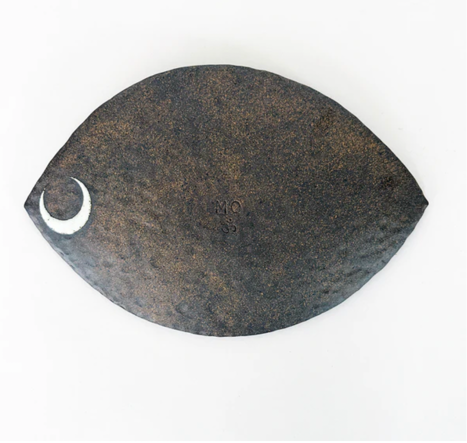 Hand formed hammered Tucker stoneware eye dish is painted with Prism Black