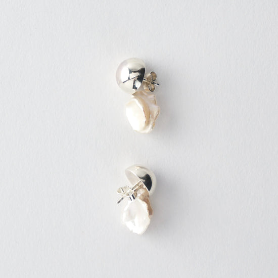 Material: 12mm Sterling silver Hemispheres / Keshi freshwater pearl / 25mm total length / for pierced ears / Sold as a pair