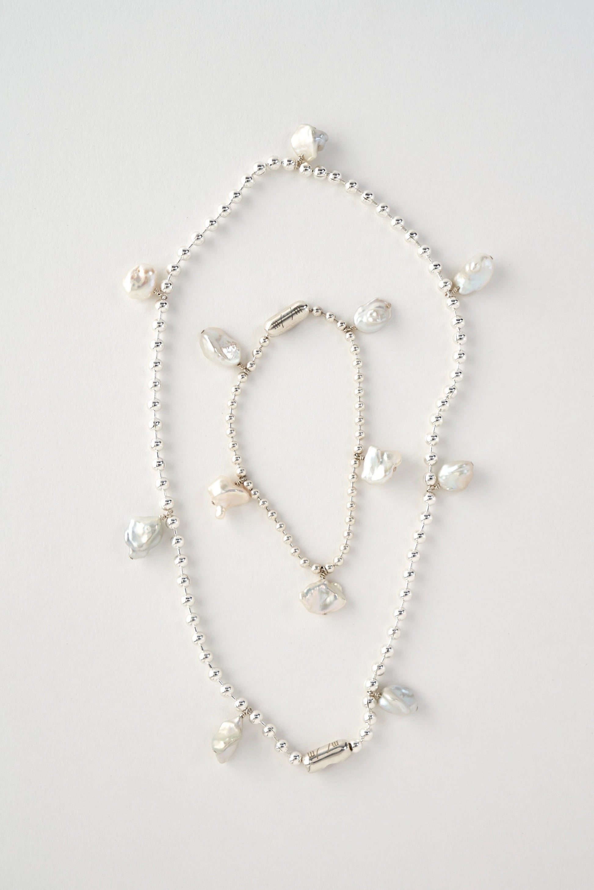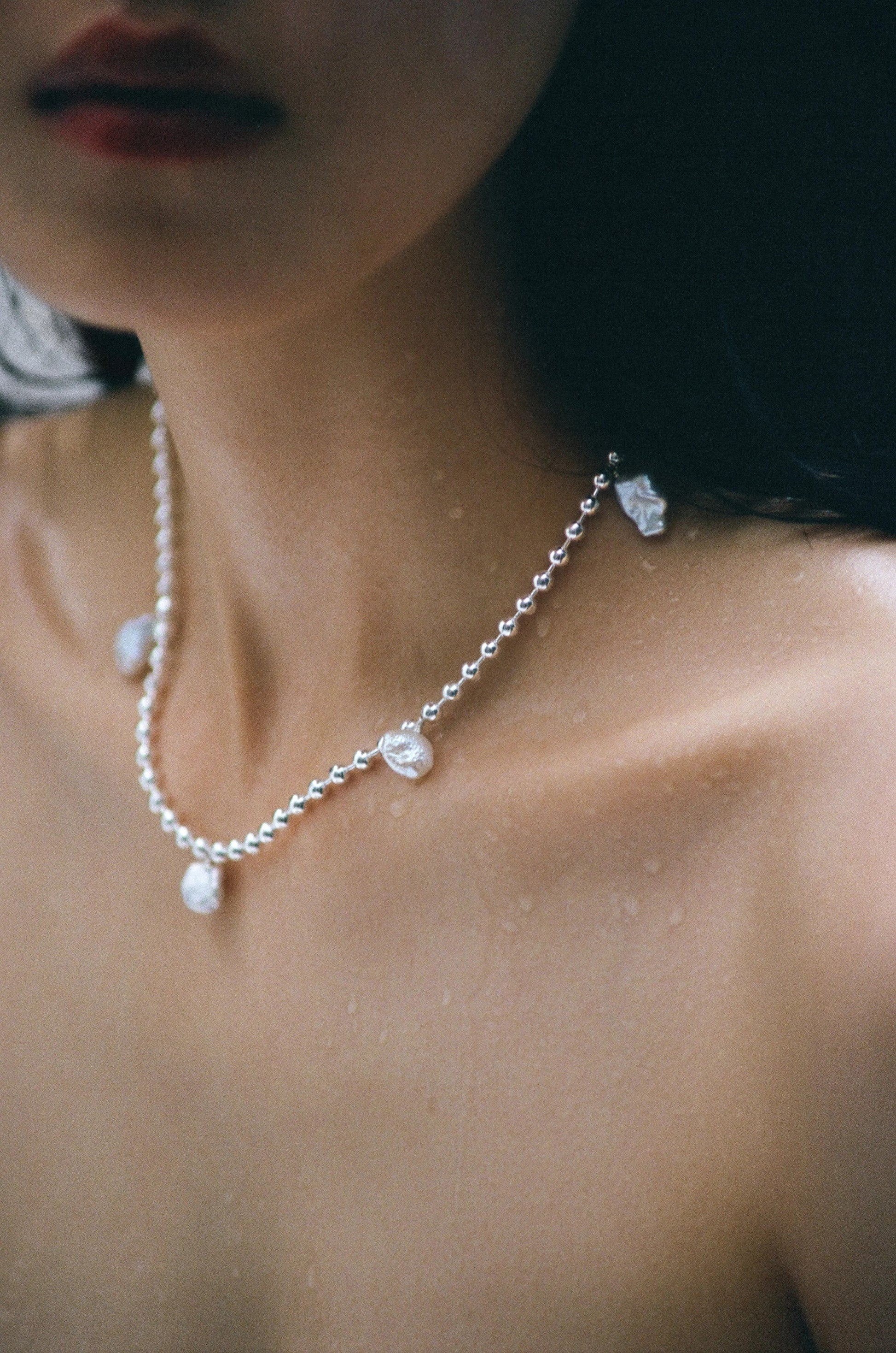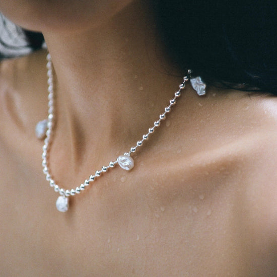 Material: Sterling silver / 3,5 mm ball chain / 40cm length / 7 x keshi freshwater pearls / ball-chain closure