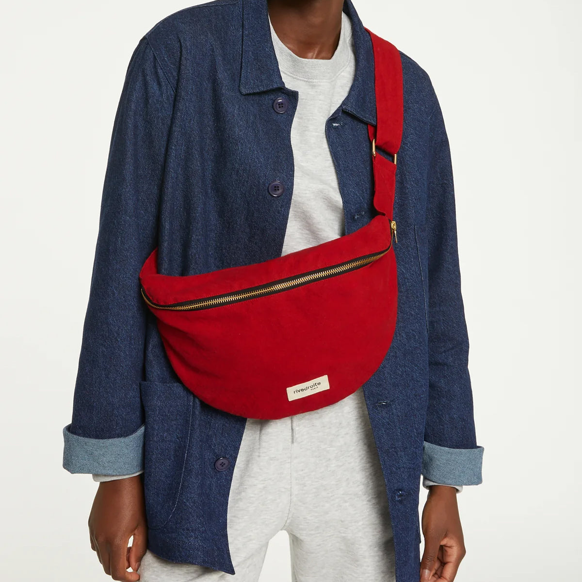Roomy, hands-free, and effortlessly cool. The Custine XL is Rivedroite’s oversized take on the classic waist bag—perfect for travel, errands, or everyday essentials. Made from upcycled materials in Paris, it’s sustainably stylish and built to last.