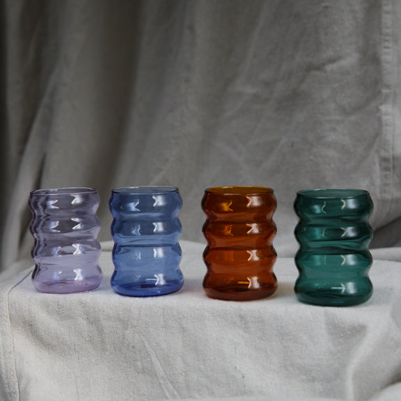 The Sophie Lou Jacobsen Ripple Cup (6 oz.) is a thoughtfully designed glassware piece that combines functionality with artistic flair. Crafted from durable borosilicate glass, it features a distinctive wavy silhouette, making it suitable for various beverages or even as a small vase.