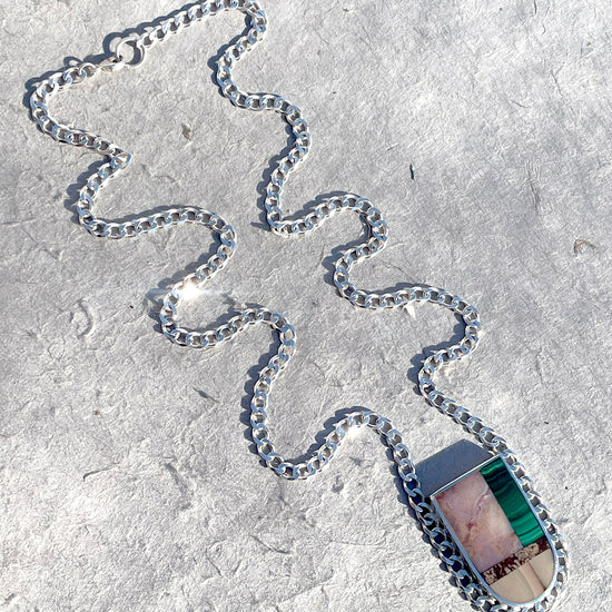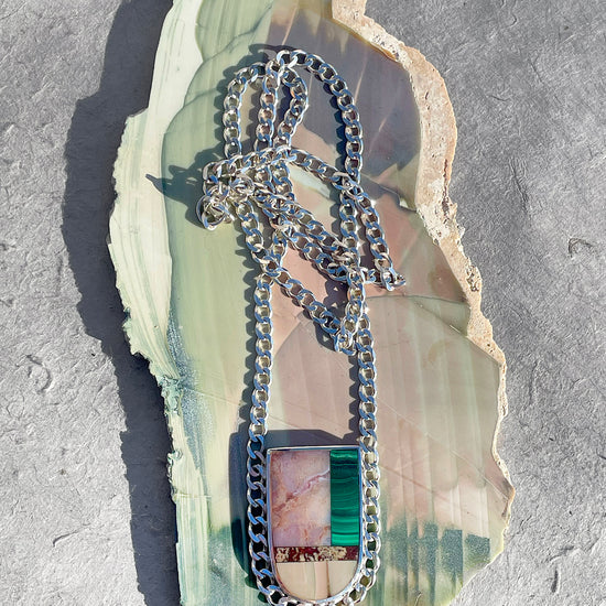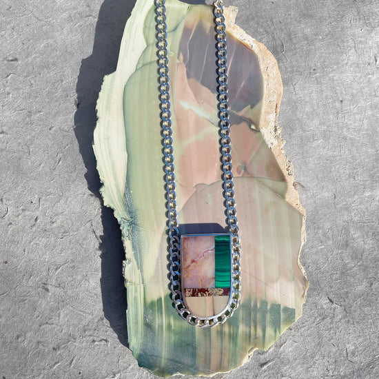 Materials: Sterling Silver, Brecciated Jasper, Malachite, Dendritic Jasper, Imperial Jasper