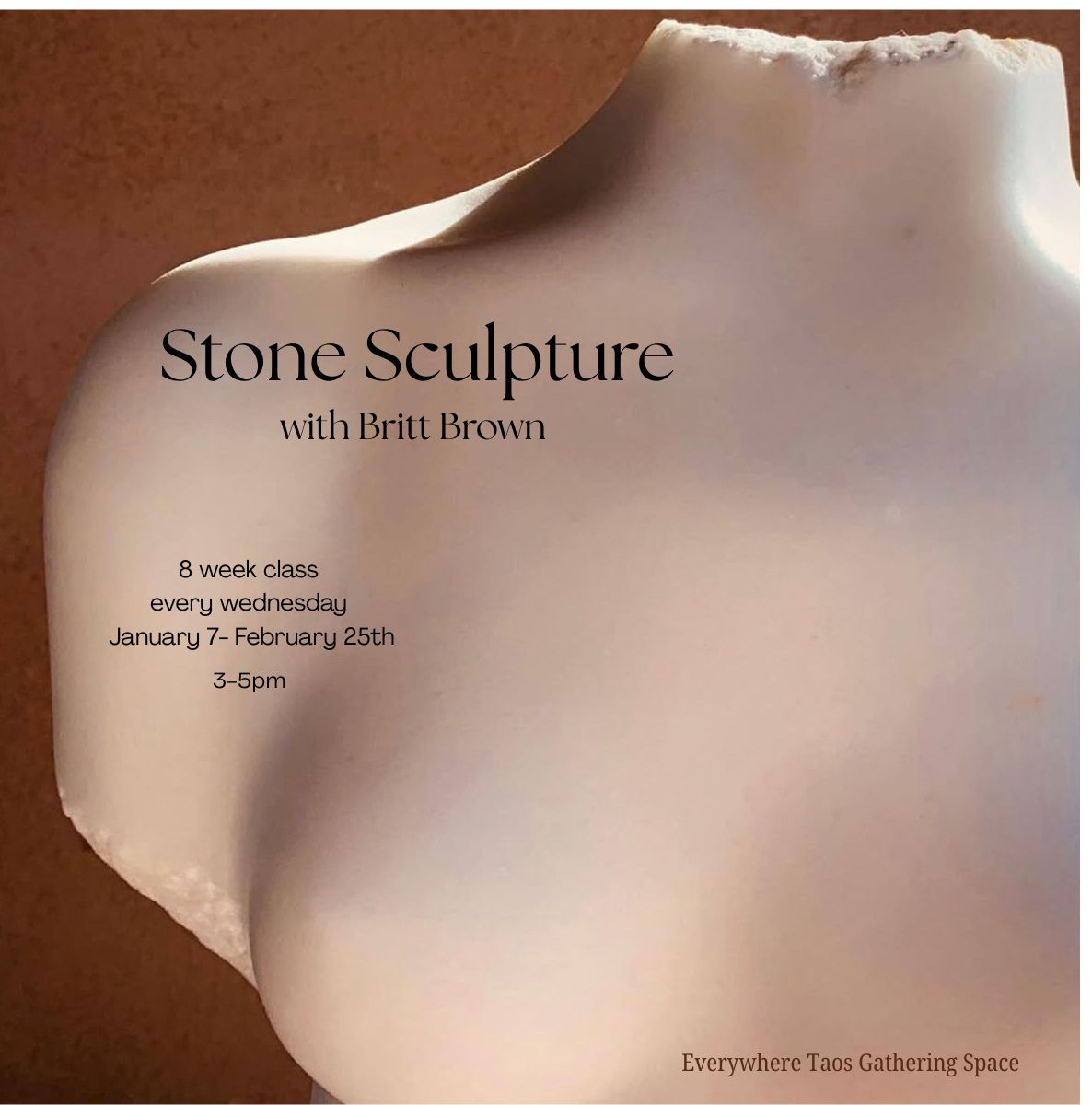 join us for an inspiring 8 week stone carving workshop with acclaimed sculptor Britt Brown, hosted at The Gathering Space at Everywhere Taos.