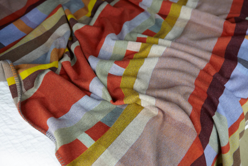 The Wallace+Sewell Merino Lambswool Block Throw – Cecil (Orange) is a luxurious and contemporary throw that combines bold design with exceptional craftsmanship. Woven from 100% merino lambswool, this throw features a dynamic overlay of colored bands, carefully selected to create the illusion of tonal depth. The soft, felted finish adds a super-soft, inviting quality, while the blanket-stitched edges provide an extra tactile detail.
