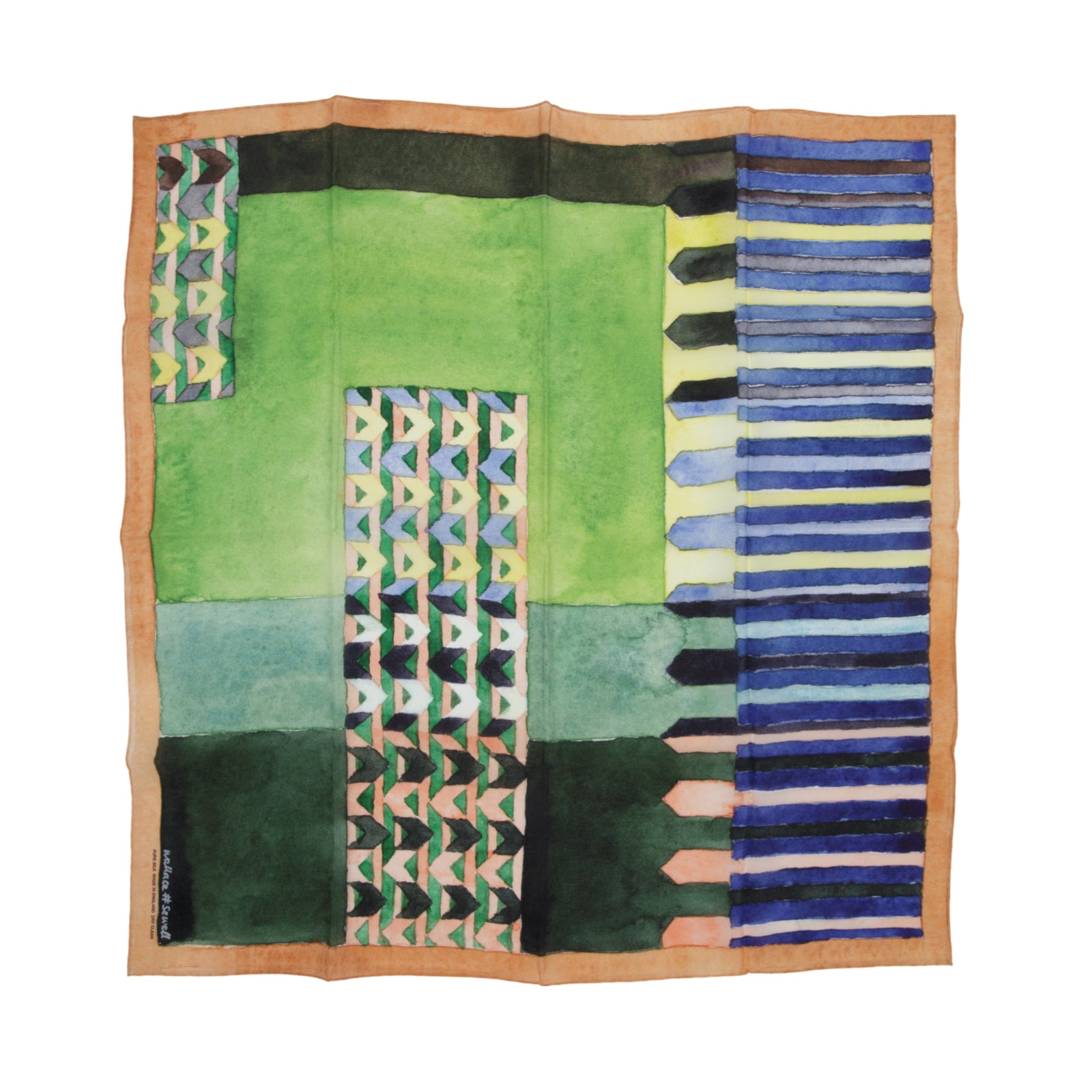 Wallace+Sewell's printed silk scarves are a vibrant fusion of art and textile design. Crafted from lightweight silk crepe de chine, each scarf features hand-painted watercolor patterns inspired by macro details of their iconic woven textiles. Designed by founders Emma and Harriet, these scarves offer a luxurious drape and a contemporary aesthetic.
